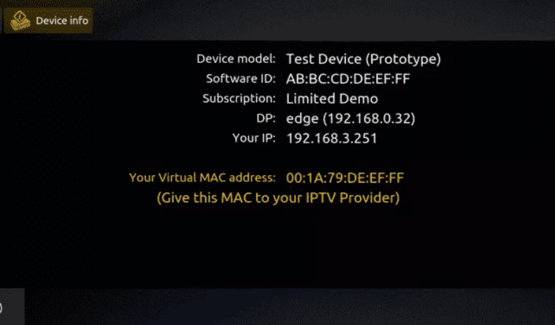 - Cliquez sur « DEVICE INFO » pour trouver votre identifiant de logiciel.