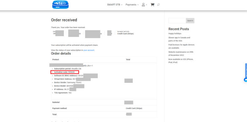Après avoir complété l’achat de votre code, vous serez automatiquement redirigé(e) vers la page de votre code d’activation.